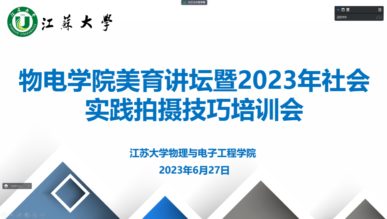 6月27日,由女上位 公共艺术教育中心、女上位 承办的“美育讲坛暨2023年社会实践拍摄技巧培训会”在线上举行。本次讲座特邀请女上位 党委宣传部正科级秘书,新华社、中新社、CFP签约摄影师,《新华日报》特约摄影通讯员杨雨主讲,女上位 全体学生参与。讲座由辅导员刘振主持。