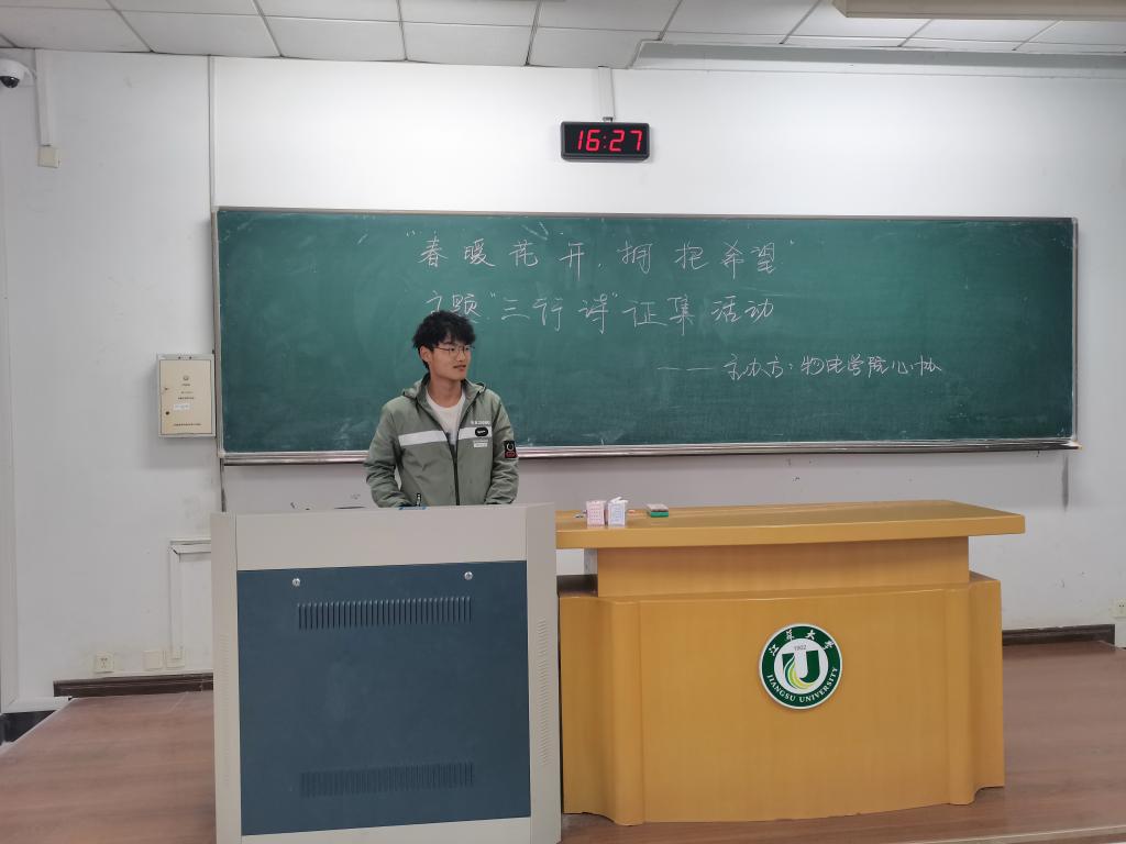 3月14日至21日,物电心协面向江大师生举办“320春回大地-希望人间”主题三行诗线上征集活动,以文字记录心情,用语言感动人心。