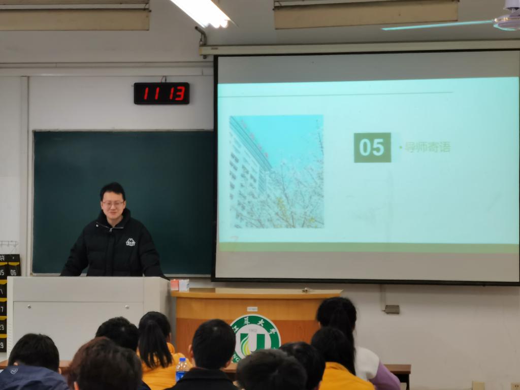 蒋老师首先就团员青年们比较关心的问题进行了交流讨论。而后,针对18级即将面临考研备考,蒋老师围绕全国考研形势、考研的意义、学院近年考研情况等,做了考研动员座谈会。他希望同学们立足实际,尽早树立合理目标,做到理想坚定,信念执著,不怕苦难,顽强拼搏,永不气馁。他提醒团员青年们,关键时期要注意复习方法,鼓足干劲、奋勇拼搏,达成考研复习攻坚任务,发挥出最佳水平。
