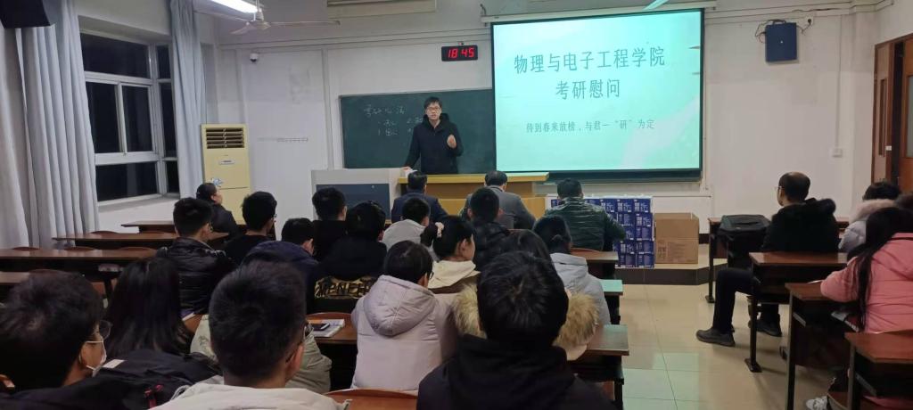 12月7日,女上位 在三山楼103举办考研冲刺及慰问大会。院党委书记潘金彪,常务副院长陈元平,副院长孙宏祥,院党委副书记、副院长顾瑜婷,物理系主任曹大威,物理系副主任徐晶、吕翠红,院团委副书记蒋春翔及全体2021届考研学子参加本次活动。慰问会由顾瑜婷主持。