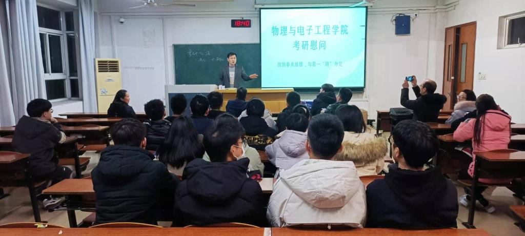 首先,潘书记送给冲刺阶段的考研学子“考研心法”,即决心、耐心、恒心和信心,他勉励同学们在最后的20多天内坚定决心、保持耐心、坚守恒心、鼓足信心。而后,陈院长提醒同学们在关键时期更要有一颗“平常心”和“细心”,他嘱咐同学们要找到排解压力的方法,以及注意身体健康,以更好的身心状态迎接考研。孙院长通过实际案例,鼓励同学们要咬紧牙关坚持,突破瓶颈后迎来的必将是胜利。物理系的三位老师也分别从考试过程中的注意点、考试前后的心理调适等方面向同学们提醒并打气。