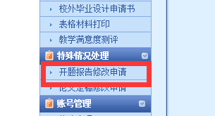 教师在特殊情况处理下—》“审核开题报告修改申请”重新审核即可。