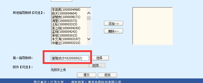 第二指导教师,在其他指导教师中选择,点击添加即可。