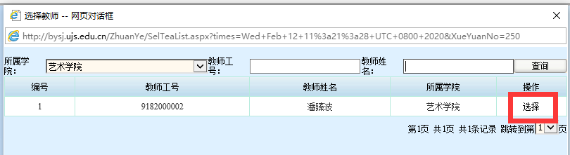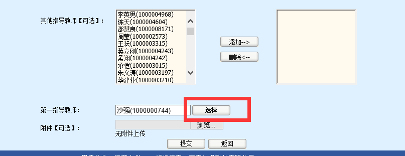 换第一指导教师,点击第一指导教师后面的“选择”按钮