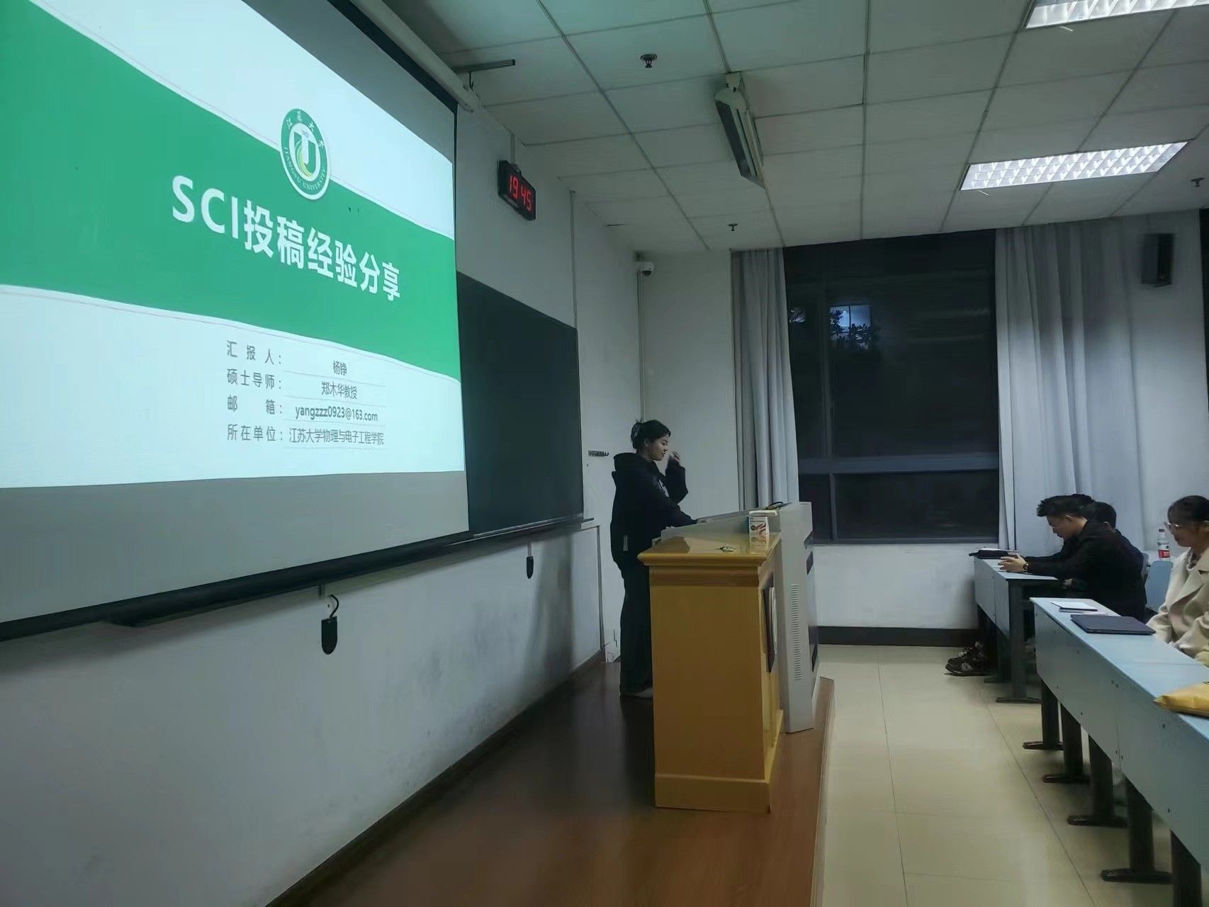 本次学术沙龙邀请了电信硕2101班杨铮、物理硕2101班王冰冰两位国家奖学金获得者担任主讲人。