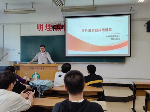 活动中通过主题班会、资助政策宣讲会、走访寝室等形式从国家奖学金、国家励志奖学金、国家助学金、退役士兵教育资助、高等学校毕业生基层就业学费奖补、勤工助学、绿色通道、建档立卡特别资助、其他资助等方面详细介绍了国家对高校学生的资助政策体系,让同学们对高校学生资助体系有了更全面的了解;同时,也从校院开设的奖助学金、勤工助学岗位信息、留学资助等方面详细介绍了学校和学院的“八位一体”资助工作体系,加深了同学们对校院两级资助政策的了解。