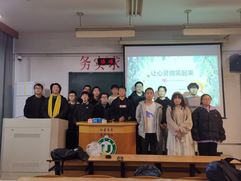 首先,心理委员杜英豪向大家做了围绕“大学生生命教育与心理危机应对”展开的知识分享,用一些在大学生活中的真实案例来向同学们传达心理健康的重要性;接着,班级同学们围绕案例进行讨论;最后,杜英豪进行活动总结,全班合影留念,活动圆满结束。