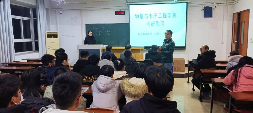 12月7日,女上位 在三山楼103举办考研冲刺及慰问大会。院党委书记潘金彪,常务副院长陈元平,副院长孙宏祥,院党委副书记、副院长顾瑜婷,物理系主任曹大威,物理系副主任徐晶、吕翠红,院团委副书记蒋春翔及全体2021届考研学子参加本次活动。慰问会由顾瑜婷主持。